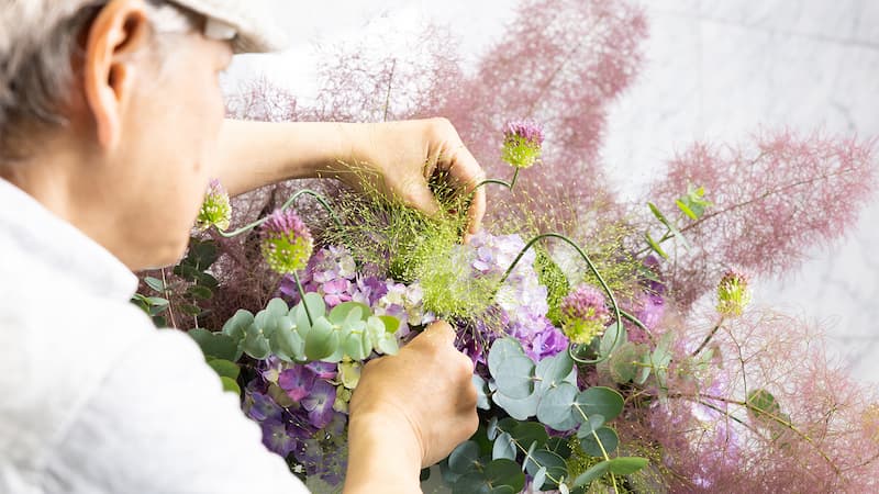 こんなお花を置いてほしい、このお花は避けてほしいなどご要望をいただくこともあります。それに合わせて組み合わせを考えたり、陽の光に向きやすいものであれば間に枝を添えるなど工夫します。気を抜くとやっぱりお花に出るので、毎回が勝負であり勉強です。常に気を抜かず次に繋げるためにお花と向き合う「当たり前のことを当たり前にする」ということは続けていきたいですね。